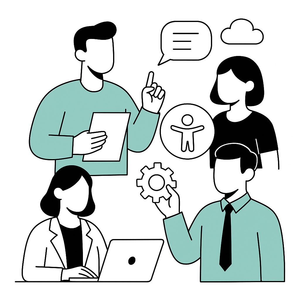 - Projektleitung, EAA-Verantwortliche:r (wahrscheinlich bist das du): liest und verstehst die Vorschriften und Normen, erstellst eine Zusammenfassung und schaffst Awareness.